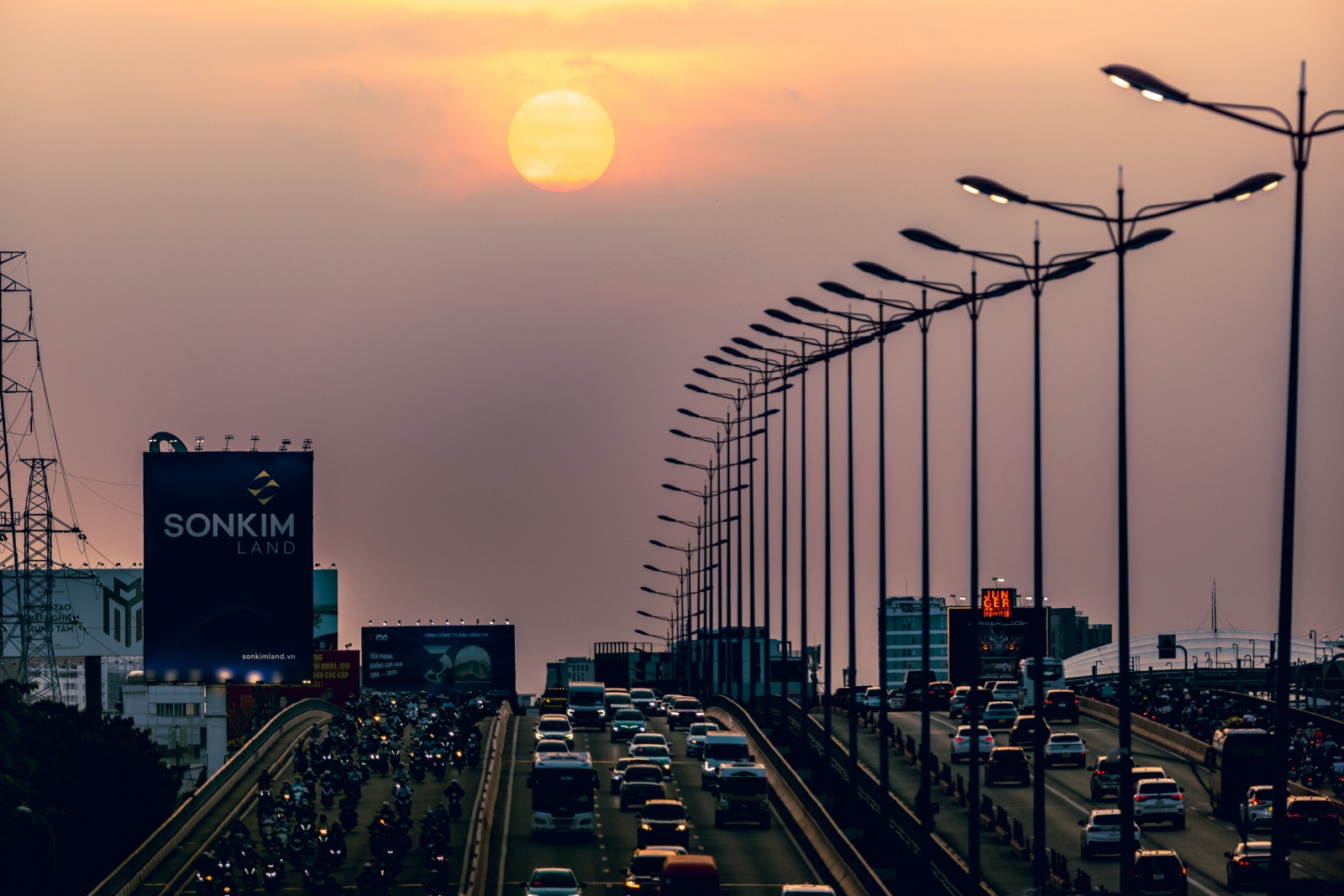 Giữa đô thị sôi động bậc nhất cả nước, những khoảnh khắc thiên nhiên như vậy trở thành “liều vitamin tinh thần” cho nhiều người sau một ngày dài làm việc. Khi mặt trời dần khuất hẳn sau đường chân trời, ánh cam nhường chỗ cho sắc tím thẫm của buổi tối, dòng xe trên cầu lại cuồn cuộn như chưa từng có phút chững lại chỉ còn những bức ảnh lưu giữ một chiều hoàng hôn choáng ngợp giữa lòng thành phố.