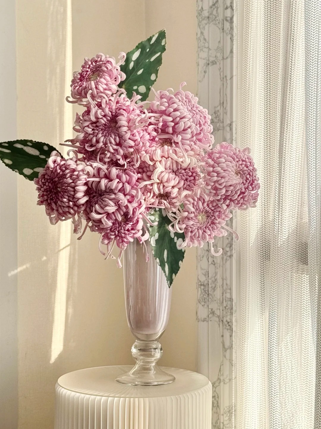 Nếu bạn đã quá quen thuộc với những bình lay ơn hay thược dược, năm nay hãy thử làm mới không gian bằng một bình cúc hoàng gia hoặc cúc sư tử. Điểm cộng lớn nhất của loài hoa này chính là tuổi thọ. Cúc có thể tươi ròng rã suốt cả tháng trời nếu bạn chăm thay nước và cắt gốc thường xuyên. Thậm chí, khi những bông hoa khác trong nhà đã héo rũ, bình cúc vẫn đứng đó, kiêu hãnh và rạng rỡ.