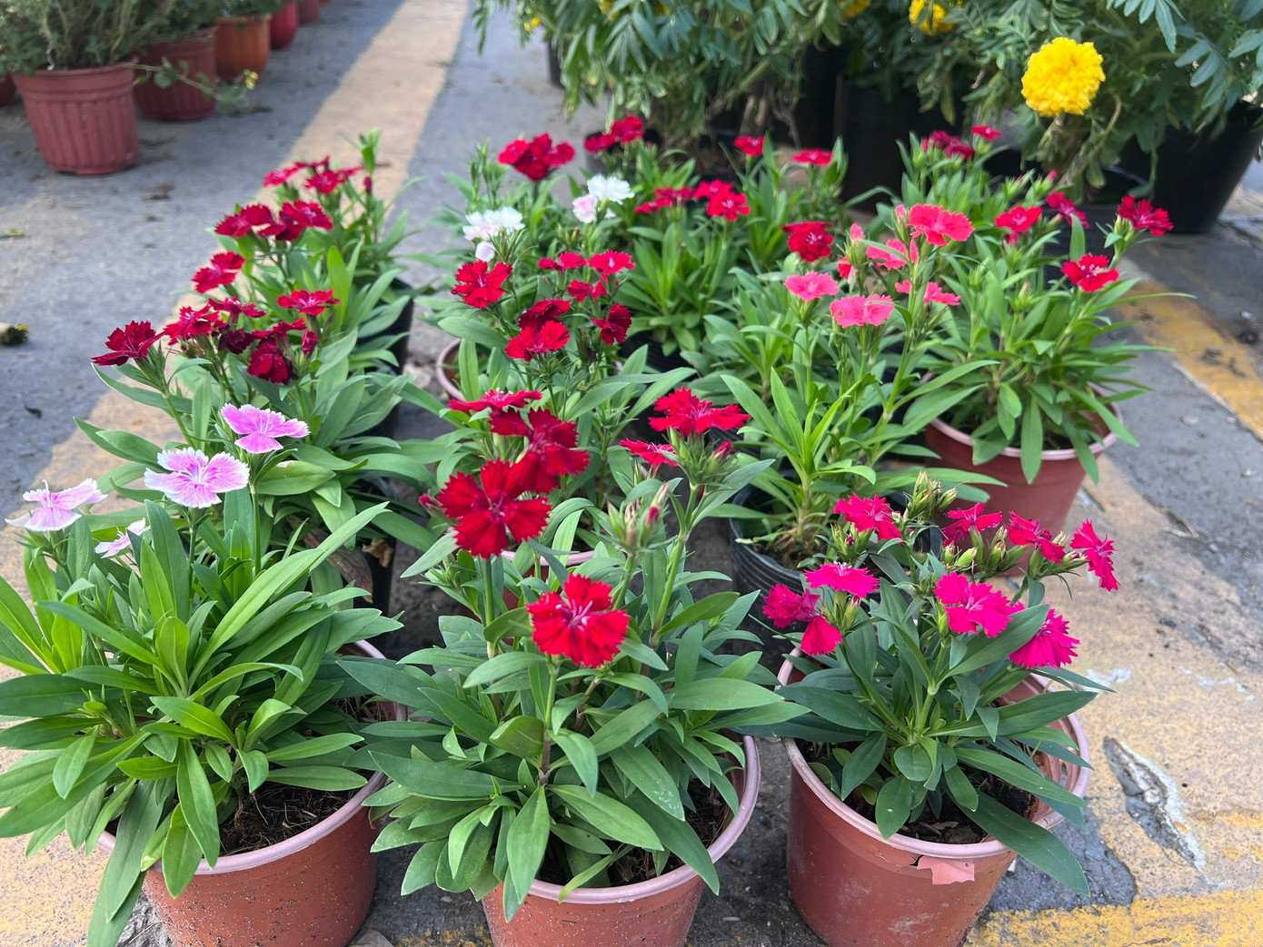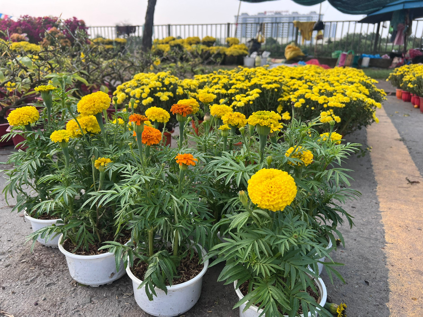 Những chậu hoa sống đời, vạn thọ rực rỡ này chỉ có giá 20.000 đồng/chậu. Khách mua bất ngờ trước mức giá nên cứ hỏi đi hỏi lại cho chắc.