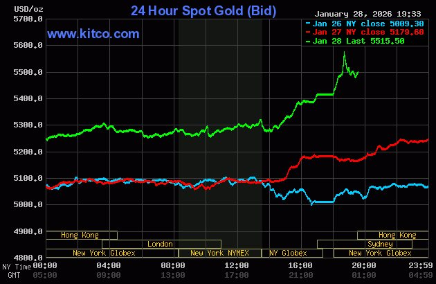 Sáng 29/1 (giờ Việt Nam), giá vàng thế giới chính thức lập kỷ lục mới 5.600 USD/ounce, cao chưa từng có. Trong chưa đầy 1 ngày, kim loại quý này đã tăng giá tới 350 USD/ounce. Đây là phiên tăng giá mạnh nhất của vàng từ trước đến nay, thậm chí chứng chiến mức tăng tới hơn 200 USD/ounce chỉ trong vài tiếng đồng hồ giao dịch.