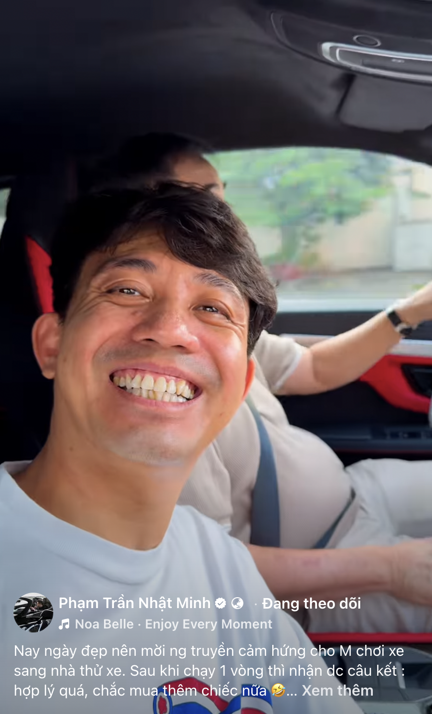 Đi kèm video, Minh Nhựa chia sẻ dòng trạng thái: “Nay ngày đẹp nên mời ng truyền cảm hứng cho Minh chơi xe sang nhà thử xe. Sau khi chạy 1 vòng thì nhận được câu kết: Hợp lý quá, chắc mua thêm chiếc nữa.” Dù không nói trực tiếp, câu chia sẻ này được cho là ngầm xác nhận việc Minh Nhựa đã bổ sung Lamborghini Urus SE vào bộ sưu tập xe của mình.