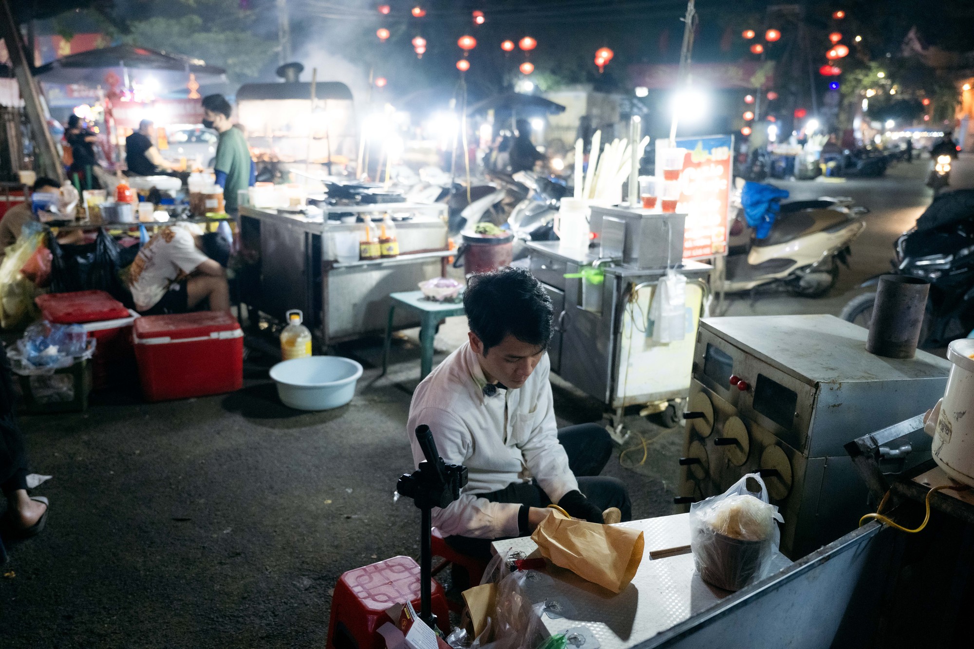 Giữa dòng người tấp nập của thành phố về đêm, Hiếu vẫn kiên nhẫn trở từng củ khoai trên bếp than đỏ lửa. Có người ghé mua vì tò mò, có người trở thành khách quen, cũng có những người đi xa chỉ để ủng hộ. Mỗi lần như vậy, Hiếu thường tặng thêm vài củ khoai như một lời cảm ơn giản dị.