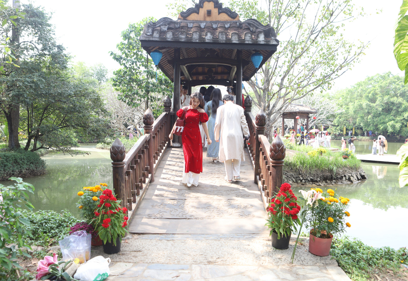 Những ngày qua, Bảo tàng Áo dài (ở phường Long Phước) thu hút đông đảo bạn trẻ đến chụp ảnh với áo dài Tết bên những không gian, tiểu cảnh thân thuộc ngày Tết.