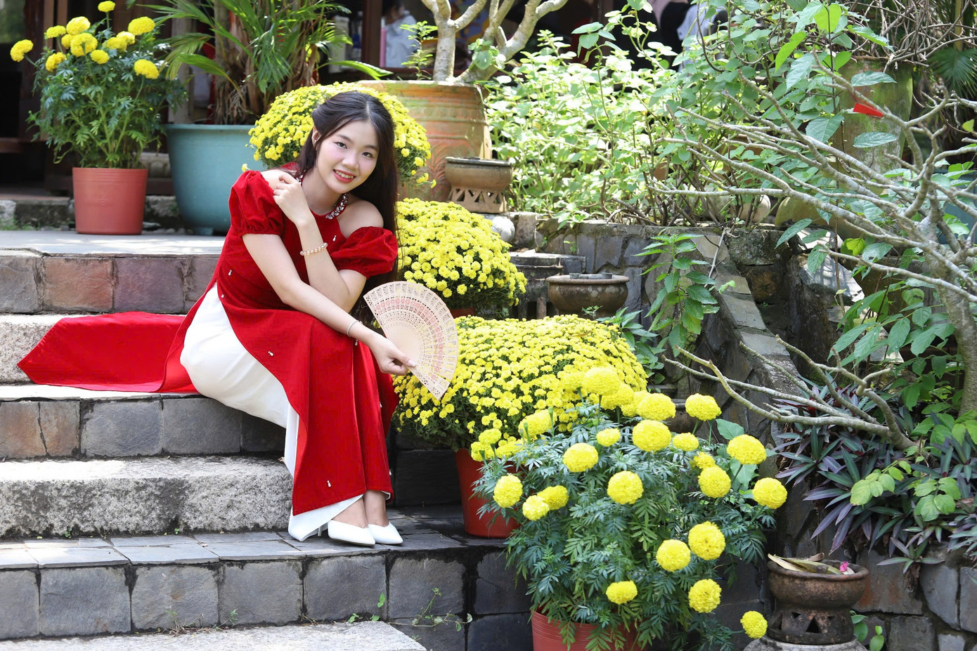 Bảo tàng Áo dài đã bố trí nhiều loại hoa như cúc, vạn thọ cùng những đồ vật quen thuộc tại nhiều khu vực nhằm tạo điểm nhấn của không gian ngày Tết.