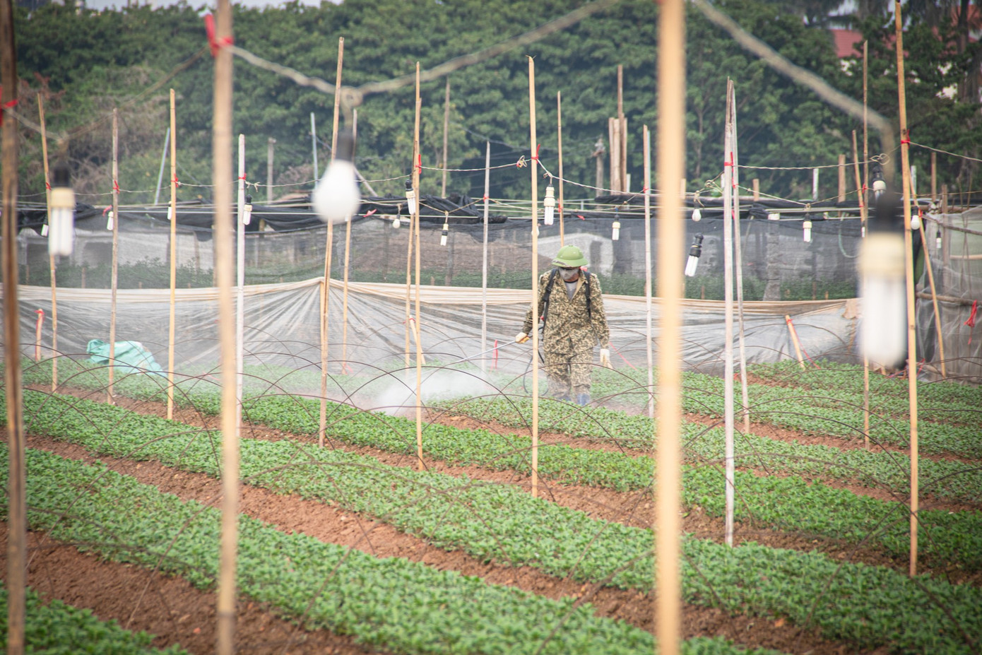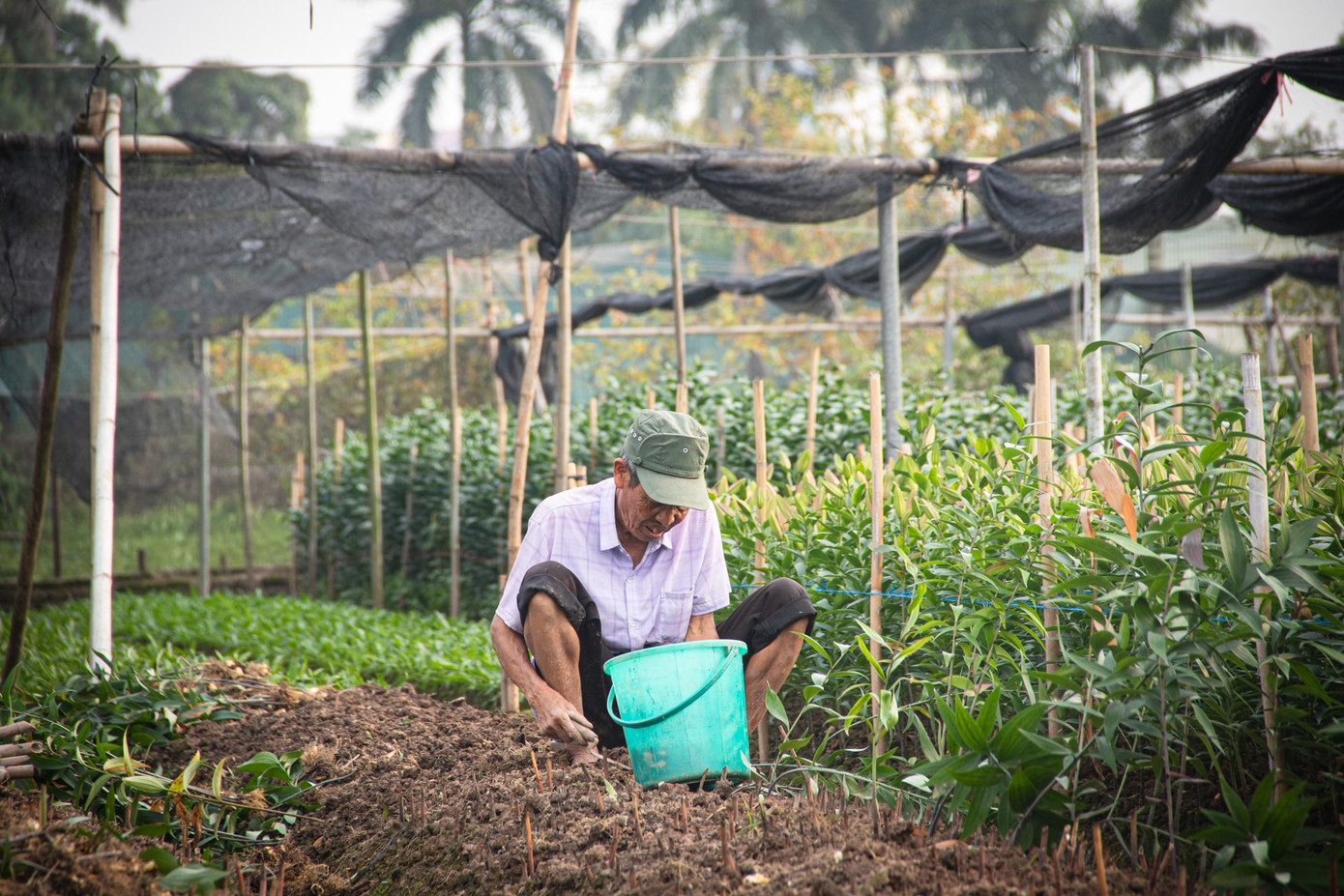 Trên những thửa ruộng trải dài bạt ngàn, người trồng hoa tất bật từ sáng sớm tới chiều muộn, tranh thủ từng ngày thời tiết đẹp để chăm sóc, tỉa cành, điều chỉnh sinh trưởng cho kịp vụ hoa Tết.