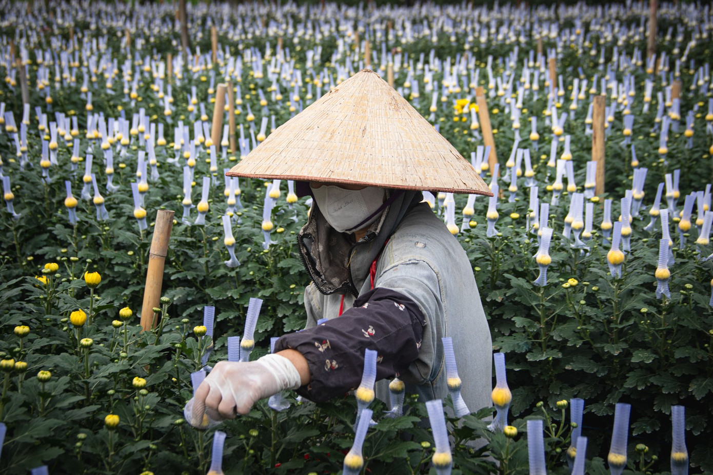 Những ruộng hoa được người nông dân chăm sóc ngày đêm, mang theo hy vọng về một vụ mùa Tết bội thu.