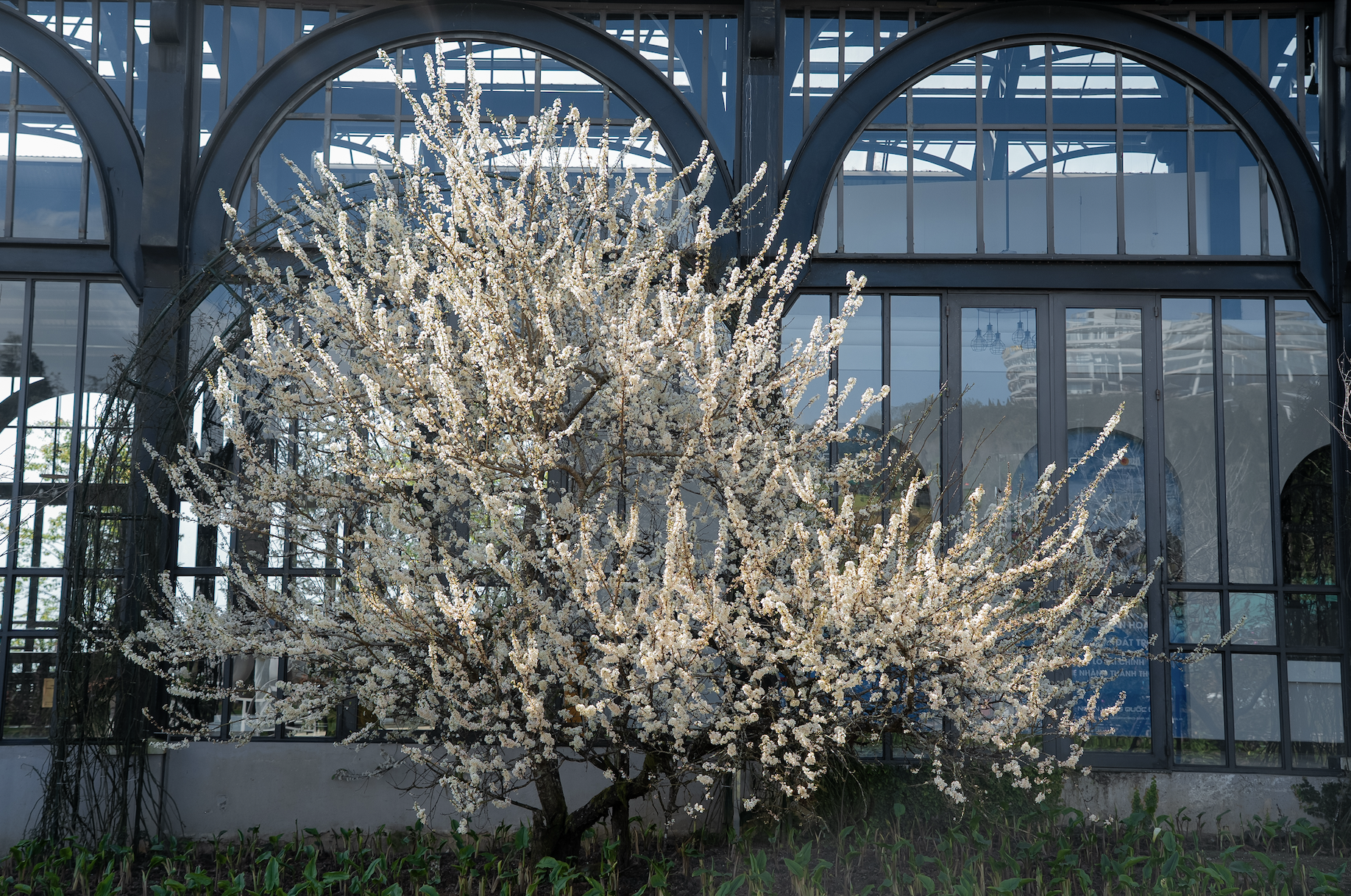 Những ngày gần đây, giới trẻ rần rần chia sẻ hình ảnh check-in bên một cây mận cao hơn 4m, nằm ngay khu vực ga đến tàu hỏa leo núi Mường Hoa, đang ở thời điểm nở rộ nhất. Tán cây xòe rộng, phủ kín hoa trắng xóa, tạo nên khung cảnh khiến nhiều người ngỡ như đang lạc bước giữa cao nguyên.